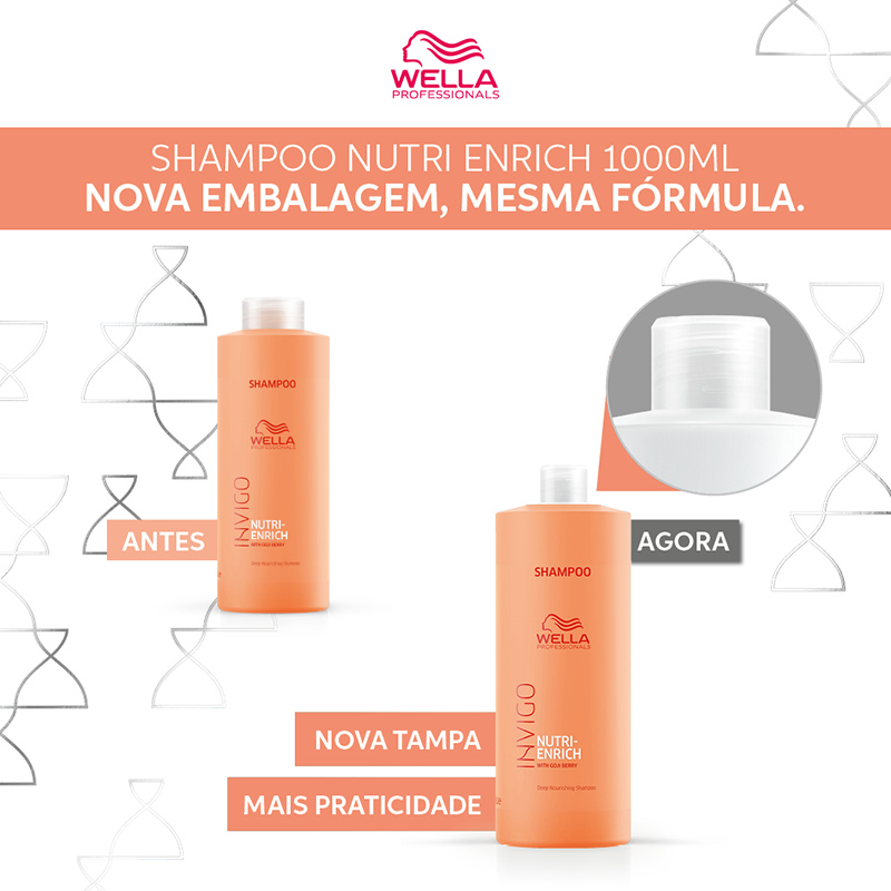 O Shampoo Invigo Nutri Enrich nutre cabelos secos ou estressados, deixando-os cheio de vitalitade. Com Nutri Enrich Blend: Ácido Oleic e Panthenol promove uma hidratação e nutrição para o cabelo, enquanto vitamina E protege o cabelo de estresses futuros. Com Goji Berry conhecido por ser extremamente rico em viaminas, minerias e peptidieos