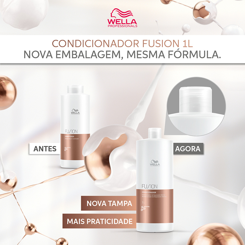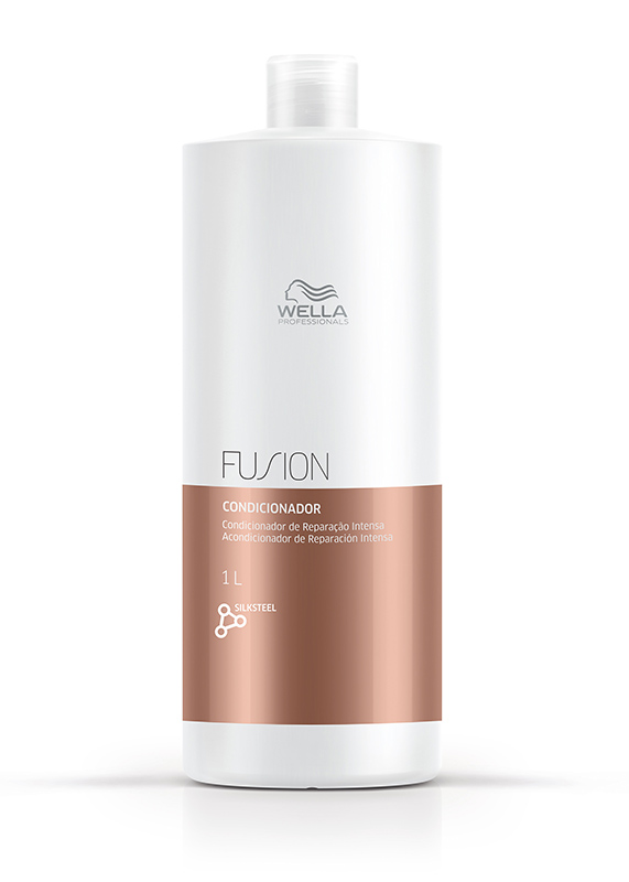 UMA NOVA DIMENSÃO EM RECONSTRUÇÃO CAPILAR: Fusion Condicionador pertence ao primeiro sistema de recuperação capilar de Wella Professionals com resultado intenso e duradouro com extensão para casa. É um condicionador que age instantaneamente, ajuda a proteger os fios contra a quebra durante a escovação e outros danos mecânicos. Desembaraça o cabelo, deixando-o macio. Atua dentro do fio do cabelo, penetrando profundamente a fim de reparar a estrutura da célula interna. Atua fora do fio, protegendo a queratina do cabelo contra o desgaste de componentes de contrução do fio, mantendo a hidratação e fortalecendo o fio. A fragrância é floral e amadeirada, elegante e luxuosa.